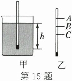 15. 跨学科实践小组制作简易密度计。在吸管的一端塞入一些铜丝作为配重,并用石蜡将吸管的两端封闭起来。