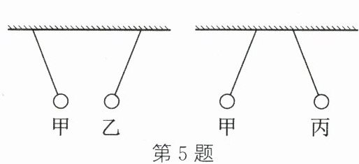 5. 有甲、乙、丙三个轻质小球,甲球带正电。将甲与乙、丙靠近时,它们相互作用的情况如图所示,则下列判断正确的是(