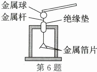 6. 用毛皮摩擦过的橡胶棒接触验电器的金属球,验电器的金属箔片张开,如图所示。下列说法正确的是(