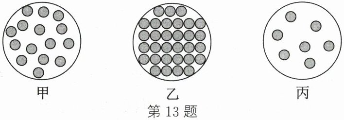 13. 如图所示的示意图形象地反映了物质固、液、气三态的分子排列特点,其中图甲表示的物态为
