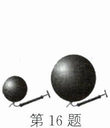 16. 如图,为了形象地说明宇宙扩张学说,用一个粘有小金属粒的气球做演示实验,该实验将粘有小金属粒的气球看成宇宙,