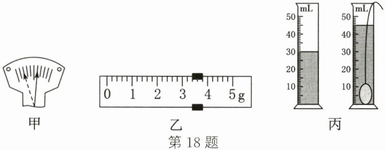 ,使天平再次平衡。(2)小宇用天平测出空烧杯的质量为 17 g,在烧杯中倒入适量的酱油,测出烧杯和酱油的总质量如图甲所示,将烧杯中的酱油全部倒入量筒中,酱油的体积如图乙所示,则烧杯中酱油的质量为