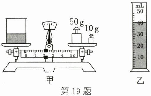 (2)小宇用天平测出空烧杯的质量为 17 g,在烧杯中倒入适量的酱油,测出烧杯和酱油的总质量如图甲所示,将烧杯中的酱油全部倒入量筒中,酱油的体积如图乙所示,则烧杯中酱油的质量为