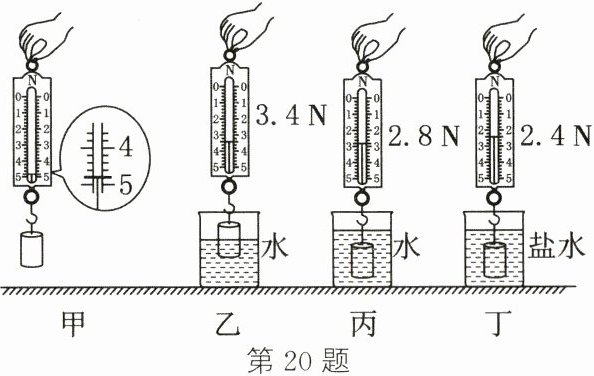 $kg/m^{3}$。答案:20. (1)2.4 (2)排开液体的体积 (3)丙、丁 (4)2.4×10³
