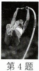 4. 撑竿跳高是一项运动员经过持竿助跑,借助撑竿的支撑腾空,在完成一系列复杂的动作后越过横杆的运动。如图是撑竿跳高运动员起跳上升时的情形,下列说法正确的是(