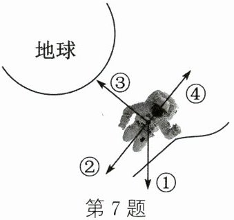 7. 如图所示为航天员出舱活动时的情境,此时她受到的重力的方向是(