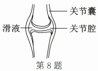 8. 如图所示为人骨关节的示意图,关节由关节囊包裹形成密闭的关节腔,关节腔内含有滑液,可以减小骨与骨之间的摩擦。下列改变摩擦的方法与此相同的是(