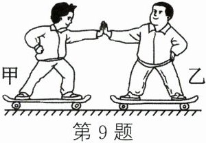 9. 质量相等的甲、乙两同学站在滑板上,在旱冰场上相对而立,如果甲用 60 N 的力推乙,如图所示。以下分析正确的是(
