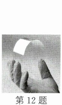 12. 我国科学团队研制出的一款柔性显示玻璃,厚度仅有 0.03 mm,创造出了新的世界纪录,这种玻璃常应用于折叠屏手机。如图所示,手指用力压这种玻璃会使其弯曲,玻璃之所以能够弯曲,是由于
