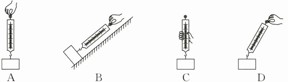 (3)以下为小明使用已经制好的弹簧测力计测量力的情景,其中测量方法错误的是