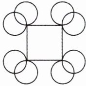 右图是圆沿正方形外围滚动一周时的关键位置,有了上面的操作经验,请你在图上标出各圆圆心的位置,并画出它的运动轨迹。