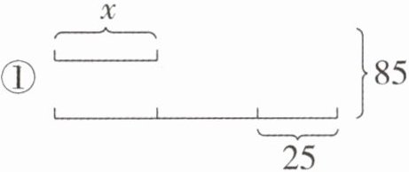 ② 一件上衣 $85$ 元,比一条裤子价格的 $2$ 倍还多 $25$ 元,一条裤子多少元?(解:设一条裤子 $x$ 元)
