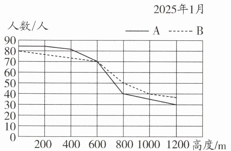 3. 如图是A、B两个公司员工登山情况统计图。