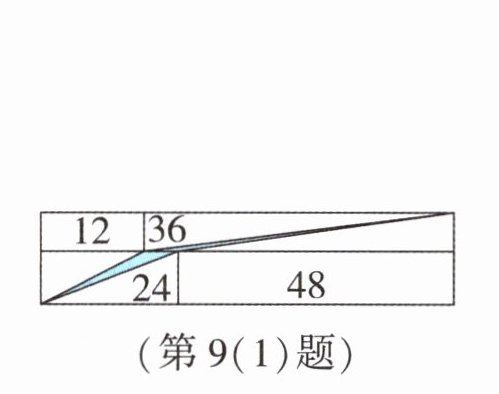 9. (1)几何直观 图中的大长方形分别由面积为 12 平方厘米、24 平方厘米、36 平方厘米、48 平方厘米的四个小长方形所组成,那么图中涂色部分的面积为(