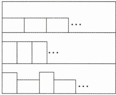 6. (1)乐乐在一个桌面上摆卡片,如图,他用三种摆法都正好从桌面的一端摆到另一端且无剩余。已知卡片长 18 厘米、宽 12 厘米,则桌面至少长(