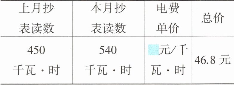 答案:1.解:设电费的单价为$x$元/千瓦·时。 $(540-450)x=46.8$ $x=0.52$
