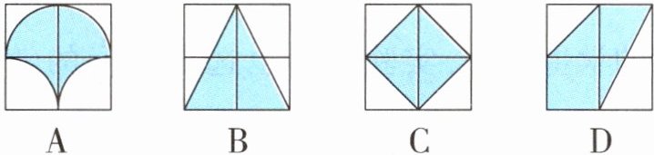 (2)一个公园准备在入口处的正方形空地上布置一个花坛(涂色部分),花坛区域的面积是正方形面积的一半。下面不符合要求的设计是(