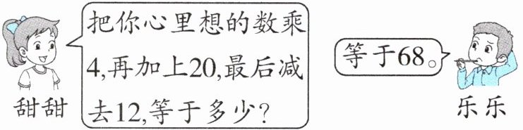 答案:6. 解:设乐乐心里想的数是 $x$。 $4x + 20 - 12 = 68$ $x = 15$