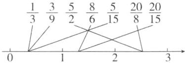 4. 下面哪些分数在直线上可以用同一个点表示?把这些分数与直线上表示该数的点连起来。