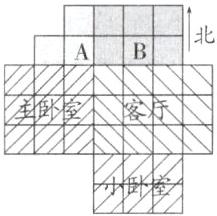 5. 如图是小明家刚买的新房平面图,A、B分别是卫生间和厨房。你能按下列要求将剩下的部分划分成1个客厅和2个卧室吗?