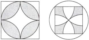提示: 画左图时, 先画出正方形, 再分别以正方形的顶点和中心为圆心, 以正方形边长的一半为半径画圆弧; 画右图时, 先画出正方形, 再以正方形的中心为圆心, 以正方形中心到顶点的距离为半径画出圆, 最后以正方形的顶点为圆心, 以同样长为半径画圆弧。