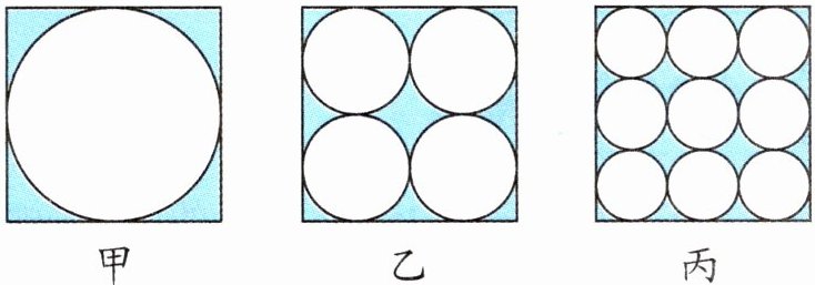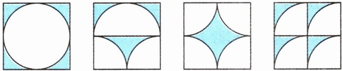 11. 如图,在三个一样大的正方形中画圆,涂色部分的面积相比,它们之间有什么关系?