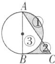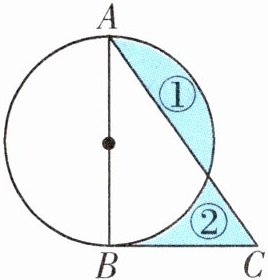 14. 如图,直角三角形ABC的直角边AB是圆的直径,且AB=20厘米。已知涂色部分①的面积比涂色部分②的面积大7平方厘米,求BC的长。