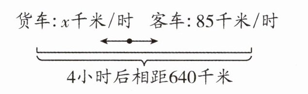 (2)货车行驶的路程+客车行驶的路程=两车距离 640 千米 4x+85×4=640 x=75