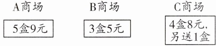 答案:4. $9÷5=1.8$(元)$5÷3\approx 1.67$(元)$8÷(4+1)=$ 1.6(元) 1.8元>1.67元>1.6元 到C商场购买,因为C商场价格最便宜。