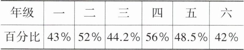 4. 实验小学各年级女生占本年级人数的百分比情况如下表,选用(