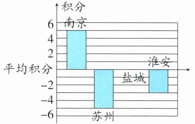 3. 如图,以“苏超”常规赛结束时4支队伍的平均积分为基准,已用条形统计图表示出南京、苏州、淮安三支队伍的积分。若画出表示盐城积分的条形图,则在图中表示(