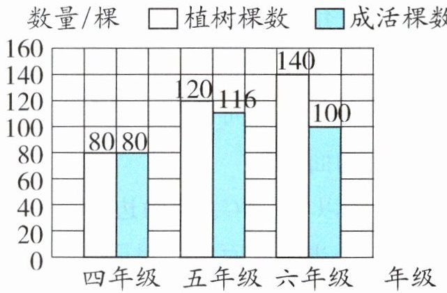)年级的成活棵数最多。(2)四、五、六年级一共植树(