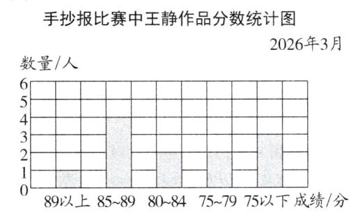 2. 每年3月份最后一周的星期一是全国中小学生安全教育日,王静参加校级手抄报比赛,评委老师给她打分的情况如下。(单位:分)