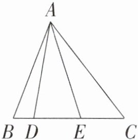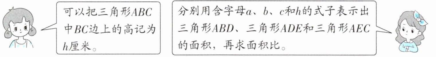 分别用含字母 $a$、$b$、$c$ 和 $h$ 的式子表示出三角形 $ABD$、三角形 $ADE$ 和三角形 $AEC$ 的面积,再求面积比。