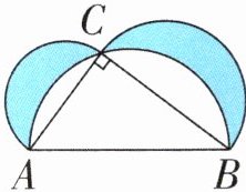 3. 在直角三角形ABC中,分别以AB、AC、BC为直径作半圆,围成两个月牙形(涂色部分),这样的月牙形在数学史上称为“希波克拉底月牙”。若$AB=5$厘米,$AC=3$厘米,$BC=4$厘米,则涂色部分的面积是多少平方厘米?
