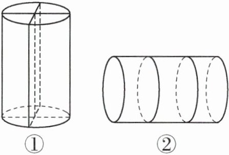 答案:11. 圆柱的底面积: $ 314÷4=78.5$ (平方厘米) 底面半径的平方: $ 78.5÷3.14=25$ (平方厘米) 由于 $ 5×5=25$, 所以底面半径为 5 厘米 圆柱的高: $ 600÷4÷(5×2)=15$ (厘米) 圆柱的体积: $ 78.5×15=1177.5$ (立方厘米) 提示: 按题图①所示的切法, 表面积增加的部分可以看成是 4 个长方形, 每个长方形的面积等于底面直径与高的乘积。每个长方形的面积为 $ 600÷4=150$ (平方厘米)。按题图②所示的切法, 表面积增加的部分是 4 个底面面积。圆柱的底面面积为 $ 314÷4=78.5$ (平方厘米), 则 $ r^{2}=78.5÷3.14=25$ (平方厘米), 进而推算出 $ r=5$ 厘米。圆柱的高为 $ 150÷(5×2)=15$ (厘米), 则圆柱的体积为 $ 78.5×15=1177.5$ (立方厘米)。