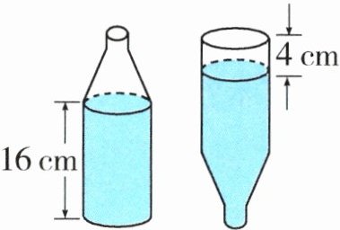 7. 如图,有一瓶水,瓶底的半径是 $5$ 厘米,将瓶正放,水面高 $16$ 厘米;将瓶倒放,水面离瓶底还有 $4$ 厘米,求瓶子的容积。