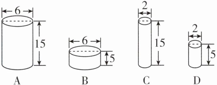 )。(4) 一个圆柱形教具的底面直径是 1.8 分米,高是 2.5 分米。如果做一个长方体纸盒,使圆柱形教具正好能装进去,至少需要 (