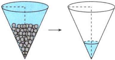 提示:设石子全部拿出来后,容器内水面高度为 $ x $ 厘米,则水面半径为 $ \frac{1}{2}x $ 厘米。则圆锥形容器的容积等于水的体积加上石子的体积,即 $ \frac{1}{3}×π×4^2×8=\frac{1}{3}×π×(\frac{x}{2})^2× x+\frac{112}{3}π $, $ x^3 = 64 $,解得 $ x = 4 $,即石子全部拿出来后,容器内水面的高度为4厘米。