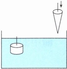 提示:根据“圆锥的底面积是圆柱的一半”可知,圆柱与圆锥的底面积之比是 $2:1$;根据“用圆锥形容器装满水倒入圆柱形容器中,倒4次正好倒满”可知,圆柱与圆锥的体积之比是 $4:1$。由此可求出圆柱与圆锥的高的比是 $ (4÷2):(1×3÷1)=2:3$,则圆锥的高是 $6÷2×3 = 9$ (分米)。