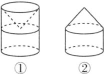 提示:从图中可以看出两个立体图形都可以分为上、下两部分,下面部分是完全相同的圆柱。把下面部分圆柱的体积看作3份,则图①上面部分的体积是 $3×(1 - \frac{1}{3}) = 2$ (份),图②上面部分的体积是 $3×\frac{1}{3}=1$ (份),所以两个立体图形的体积之比是 $ (3 + 2):(3 + 1)=5:4 $。