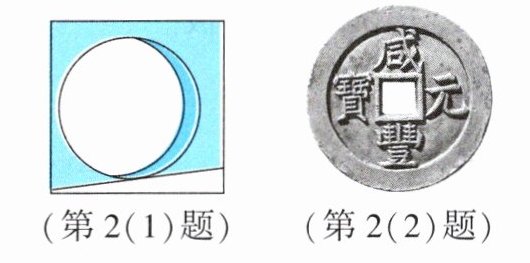 (2)在洛阳博物馆,乐乐看到一种古代的圆形铜钱币(如图),直径约为 8 厘米,厚度为 4 毫米,正中间的正方形缺口边长为 2 厘米。如果把 20 个这样的钱币对齐正方形缺口垒起来,垒起来的钱币的体积大约为(