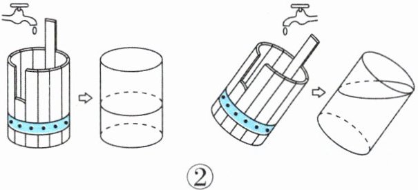 )(填序号),并解答。(接头处、铁皮厚度忽略不计)(2)如图②,把这个木桶斜放,比平时最多能多接多少毫升水?