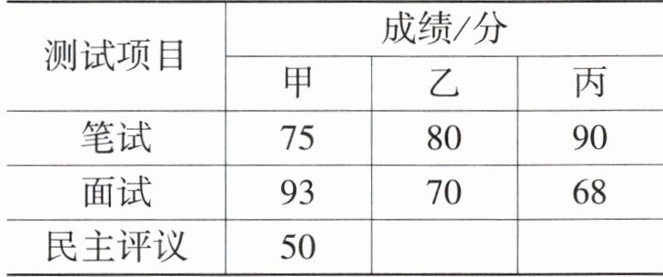 提示:民主评议总人数为$50÷25\% = 200$,丙:$200×35\% = 70$(分),乙:$200×(1 - 35\% - 25\%) = 80$(分)。