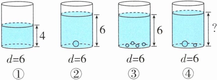 7. 有大、小两种玻璃球,放入盛有同样多水的圆柱形容器中,用“排水法”测量玻璃球体积。(单位:厘米)