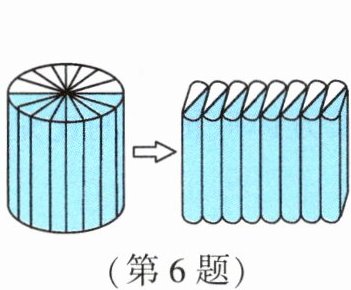 6. 如图,把一个圆柱切开后拼成近似的长方体,表面积比原来增加了 8 平方分米,原来圆柱的侧面积是(