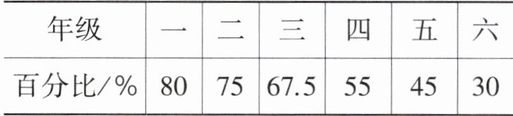 提示:六(3)班共有 $5 + 9 + 3 + 2 + 8 + 4 + 4 + 5 = 40$ (名)同学。把一年级时喜欢看动画片的人数看作单位“1”,要求六年级时喜欢看动画片的人数比一年级时喜欢看动画片的人数减少了百分之几,就是求减少的人数占一年级时喜欢看动画片的人数的百分之几,可以直接运用百分比进行计算,列式为 $(80\% - 30\%) ÷ 80\% = 0.625 = 62.5\%$。