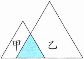 [应用迁移]如图,甲、乙两个三角形重叠在一起,甲三角形中没有重叠部分的面积为甲面积的$$\frac{4}{9}$$,乙三角形中没有重叠部分的面积为乙面积的$$\frac{4}{5}$$,那么甲、乙三角形面积的比为(
