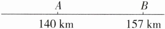 (3) 地图上有一条笔直的公路,其中 $A$、$B$ 两点分别表示公路上 140 千米处和 157 千米处。若将直尺放在此地图上,刻度 15、18 的位置正好分别对准 $A$、$B$ 两点,则此时刻度 0 的位置对准地图上公路的(