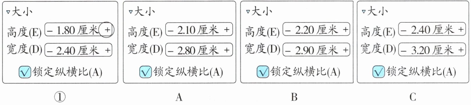 提示:锁定了纵横比,则高度和宽度的比值是一定的,根据高度的缩放求宽度,与题图中的宽度比较来判断哪一种情况是不可能出现的。